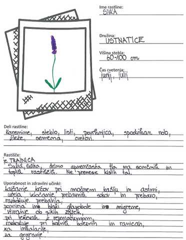 zgradbo cveta, zapisovali recepte iz zdravilnih rastlin, izdelali zemljevid z
